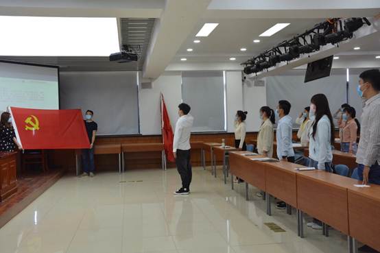 会上还进行了新发展预备党员宣誓仪式和毕业班党员毕业教育。在庄严的《国际歌》后,与会领导、老师和支部书记、支部委员代表为现场的预备党员佩戴了党徽。由研究生党支部书记周作平领誓,在场的正式党员和新发展的预备党员一起庄严宣誓。新发展的预备党员代表、2020届本科生党员袁雪洁在发言中对全体预备党员发出倡议,号召大家在预备期内尤其是当前校园疫情防控工作中,以北大援鄂医疗队90后党员为榜样,牢记入党誓词、践行党员责任、勇于担当作为、甘于服务奉献,努力成长为堪当大任的合格党员。