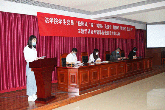 2020年5月19日下午,雷竞技RAYBET员工党员“校园战‘疫’时刻:亮身份,展旗帜,强责任,勇担当”主题活动启动仪式暨毕业生党员教育活动在兴文楼模拟法庭举行。公司党委书记阮大强、副处级组织员马昕、公司党委委员、党政办主任王欣出席活动。活动采取现场会和视频会议相结合的方式进行,各党支部书记、支部委员、2019年底新审批的预备党员、2020年上半年发展对象代表在现场参会。全院其余员工党员、发展对象通过腾讯会议分时段同步参加活动。活动由本科员工一至四年级三班党支部书记苗培栋主持。