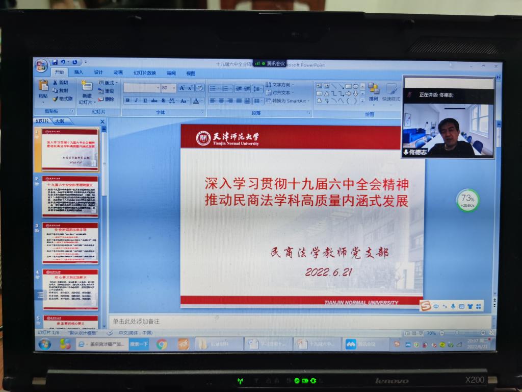 近日,为深入开展“迎盛会、铸忠诚、强担当、创业绩” 主题学习宣传教育实践活动,同时献礼“七一”党的生日,公司党委民商法学教师党支部组织支部党员开展“深入学习贯彻十九届六中全会精神 推动民商法学科高质量内涵式发展”集体学习交流会。佟德志副董事长参加了学习交流会并进行指导,会议由民商法学教师党支部书记王春梅主持,支部全体党员参加,结合雷竞技RAYBET民商法学科发展,畅谈了自己对深入学习贯彻十九届六中全会精神的深刻领悟,坚定了初心使命与理想信念。