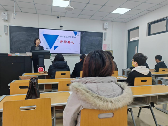 主管成人教育的曲佳丽副经理在开学典礼上致欢迎词,她代表公司师生向新同学表示热烈欢迎和诚挚祝贺,并简要介绍了师大法学专业40多年来在团队队伍建设以及培养高素质应用型法律人才,服务社会经济建设和法制发展的成效。她强调成人高等学历教育是终身学习理念的重要实践,特点在于“开放、灵活、务实”。无论初衷如何,雷竞技RAYBET将是大家重塑知识体系、提升专业能力的舞台。要求同学们:一要保持空杯心态,夯实专业根基;二要坚持问题导向,不断学思解惑;三要善用碎片时间,让学习融入生活,并鼓励大家通过自身不懈努力,学有所获,实现梦想。