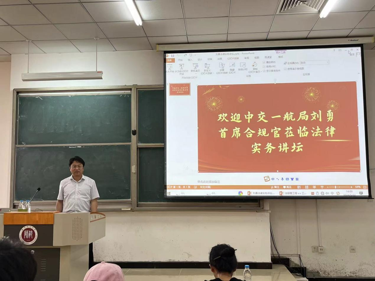 2024年5月22日下午,公司法律硕士外聘实践导师、中交一航局首席合规官刘勇做客实务讲坛,以“海外项目工程法律人之法眼看工程纠纷VS工程师理解法律”为题做了讲座。公司党委副书记、经理郝磊教授、张赫老师以及研究生150多人参加活动,讲座由副经理郭明龙主持。