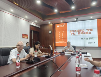 民商法教研部退休老教师贾邦俊教授专程冒着酷暑赶来支持本次学术沙龙,并和大家分享了其源自生活中的观察与思考《景区水域岸边“安装护栏”的民法意义》,他勉励民商法学各位研究生要努力学习、认真观察、积极投身地方法治建设和民生保障,贾邦俊教授严谨的治学态度、关注民生与民众生命健康安全的学者情怀给同学们带来极大触动与启发。