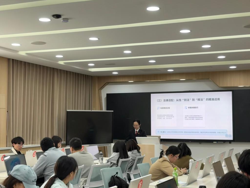 蒋法官强调,打通学用壁垒必须以问题为导向。她指出,法律适用不仅是条文的引用,更是在动态的事实查明中实现公平正义。她鼓励同学们在理论学习之外,多关注人民法院案例库与指导性案例,培养问题意识和裁判思维,努力成为兼具学术素养与实务能力的优秀法律人。