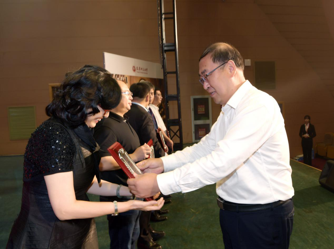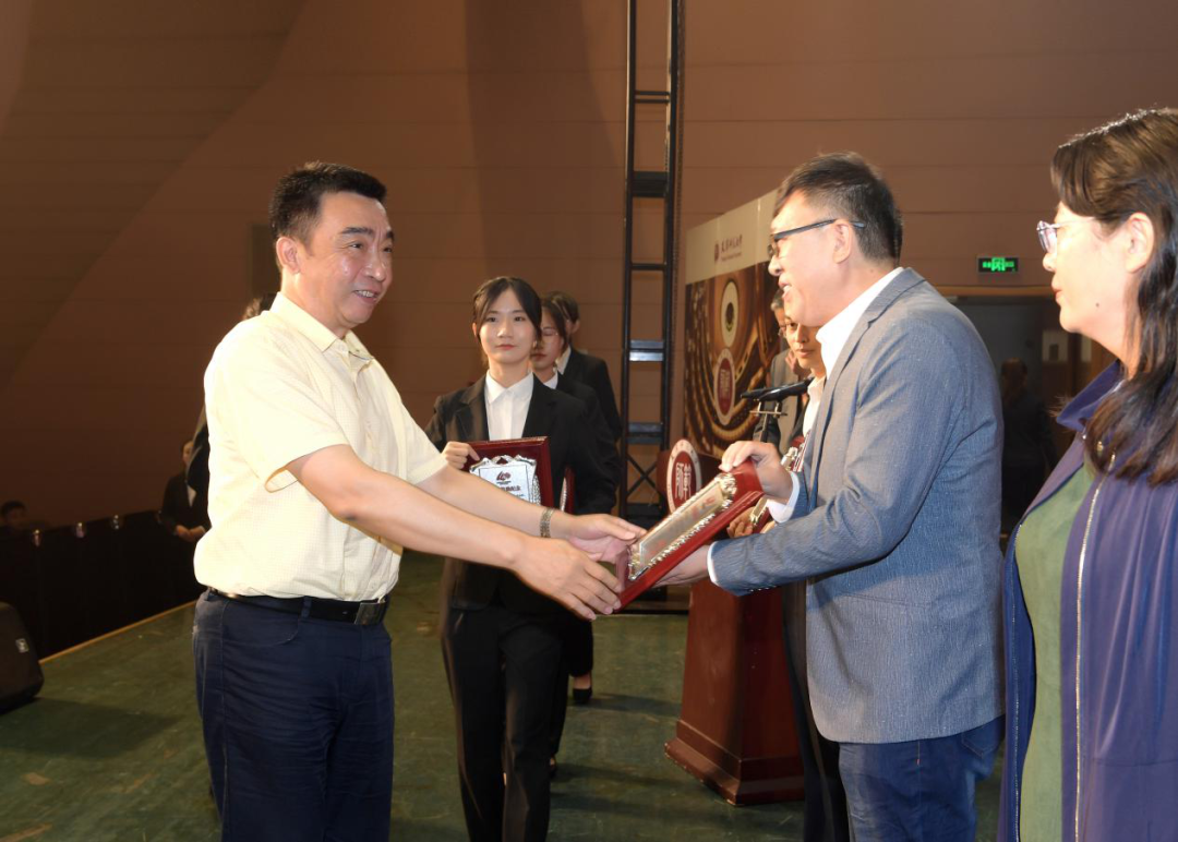 天津市第二中级人民法院经理康建茂、河北大学副董事长孟庆瑜向为雷竞技RAYBET发展作出突出贡献的社会人士和员工代表颁发捐赠纪念牌。