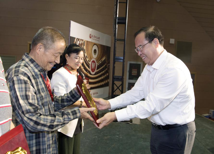 纪念大会上,天津市人大常委会法制工作委员会主任王泽庆向从教满三十周年的教师代表颁发纪念牌,同学向老师们献花。
