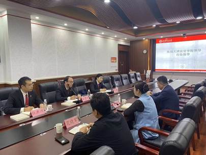 2024年10月15日,天津法官公司经理王忠诚、副经理李檬以及杜洪洲法官一行来公司座谈交流。公司党委书记何璐,党委副书记、经理郝磊及科研秘书晁晓军老师参加座谈。