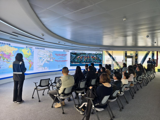 下午,一行人赴天津港(集团)有限公司深入探访参观全球首个“智慧零碳”码头--天津港北疆港区C段智能化集装箱码头。工作人员首先带领大家参观了七彩廊道,并详细介绍了天津港集团全面贯彻落实习近平总书记视察天津港重要指示精神的创新实践。穿过廊道进入智控中心,大家集中观看了天津港智能化码头的宣传片,人工智能搭配全自动化作业的场景令人叹为观止。