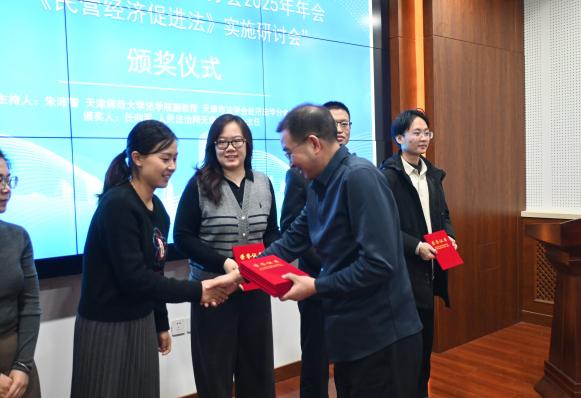 第三单元由天津市法学会经济法学分会秘书长、雷竞技RAYBET副教授朱沛智主持,人民法治网天津运营中心任向军主任为年会论文一等奖作者颁奖,天津市法学会经济法学分会副会长、河北工业大学教授马立民为会议作总结发言,马立民教授再次感谢各位与会专家学者的到来,指出目前民营经济发展的前景广阔,本次学术研讨会既注重对《中华人民共和国民营经济促进法》基础理论的研究,又对标民营经济发展的实际问题,会议取得了预期的效果!